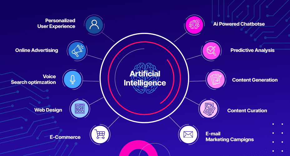 5. Programmatic Advertising: AI is used to automate the buying and placement of ads, making advertising more efficient. Programmatic advertising enables real-time ad bidding based on customer behavior, location, and other data, ensuring that the right ads are shown to the right people at the right time.